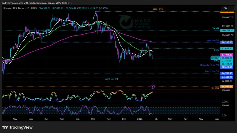 Bitcoin започва седмицата на 86,5 хиляди! Дали този спад под 90 хиляди ще доведе до по-голям срив или биковете ще успеят да покажат сила?! С течение на времето свещите продължават да се натрупват в полза на мечките и Назгулите… Могат ли биковете отново да запалят пламъка на надеждата?! Няколко ключови възстановявания за биковете или просто пробив под 80k за мечките?! Нещата стават все по-интересни в криптосвета, като не липсват напрежение, вълнение и несигурност и от двете страни! 🐈 🍿 ⚰️