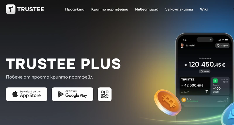 Trustee Plus е европейски крипто портфейл с интегрирана карта Quicko Digital, който ви позволява да съхранявате, обменяте и харчите своите криптовалути директно в евро. Чрез приложението за iOS и Android получавате удобен достъп до своите активи и възможност за моментална конверсия към IBAN сметка в SEPA.