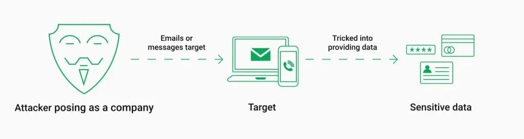Обикновено нападателят се свързва с жертвата, маскиран като представител на някоя институция, и се опитва да получи възможно най-много лична информация. Съществува и вероятност, представяйки се за представител на банка или Google, той да получи веднага паролата или информацията за кредитната карта. За разлика от другите техники, социалното инженерство може да се случи офлайн, като се обади или дори лично се срещне с жертвата.
