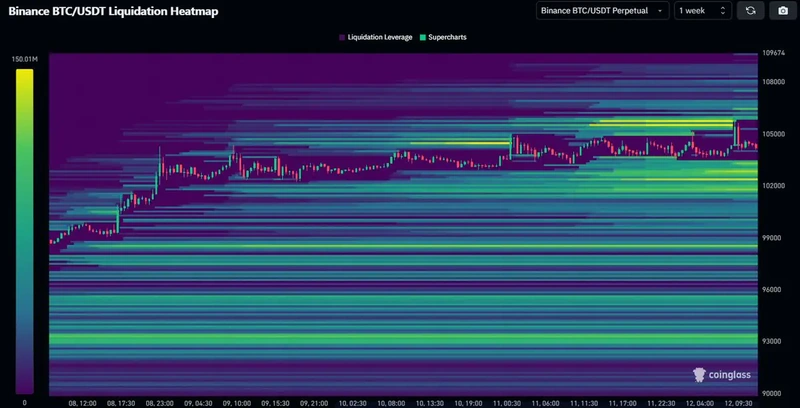 Сега всички погледи са насочени към диапазона от 102 000 долара, който изглежда като следващата потенциална цел за ликвидация. Тази зона е изпълнена с гъста група от ливъридж позиции, които могат да бъдат изложени на риск.