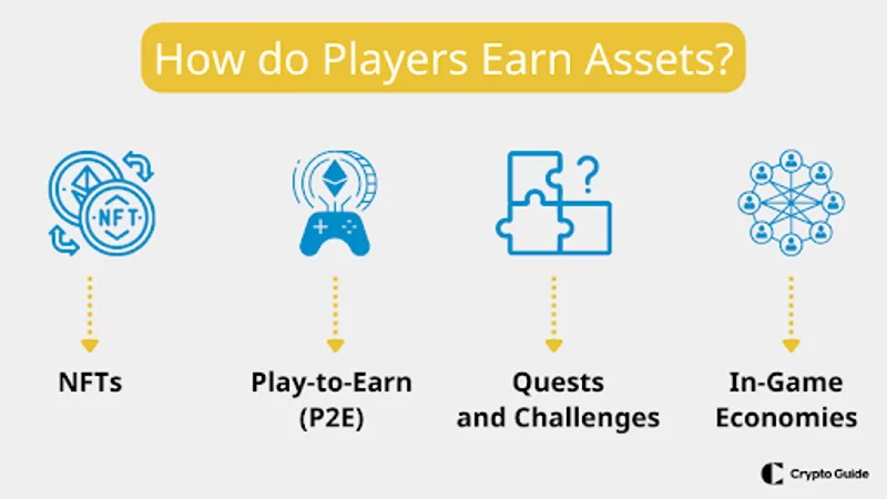 Играчите могат да печелят активи за крипто игри чрез различни механизми, обяснени по-долу.