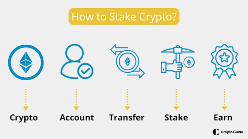 Стейкингът е процес на блокиране на активите ви в криптовалута, за да участвате в консенсусния механизъм на блокчейн мрежата. Този механизъм се използва за защита на мрежата и за потвърждаване на трансакциите. В замяна на залагането на вашите монети ще получите награди, обикновено под формата на допълнителни монети или токени.