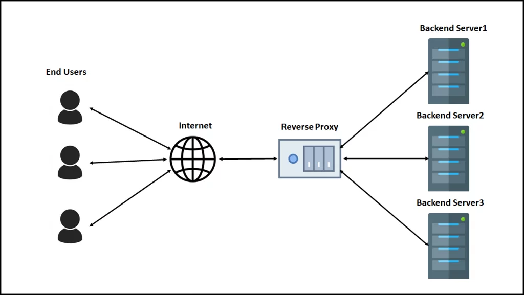 - Когато заявката на потребителя пристигне в уебсайта, той всъщност се свързва с обратния прокси сървър, а не с истинския уеб сървър. Този „външен“ уеб сървър опростява заявката на потребителя с помощта на технология, която е разбираема за реалния backend.