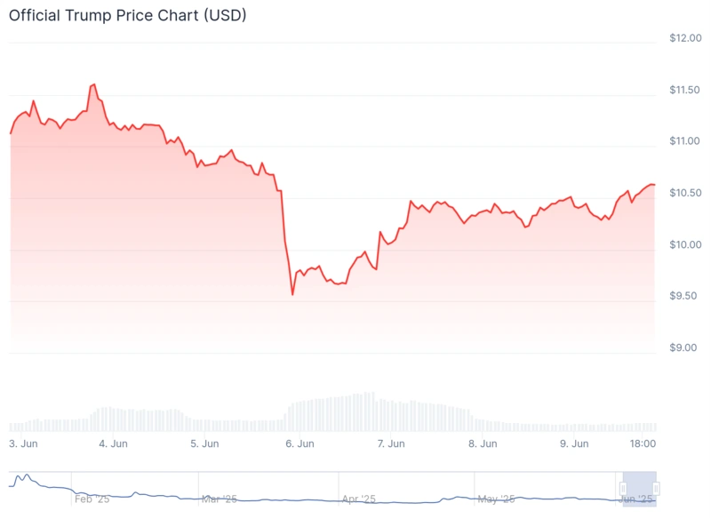 Докато крипто пазарът отбеляза леки колебания след публичния спор, по-малките мемкойни, свързани с Тръмп и Мъск, претърпяха значителна волатилност. Официалният мемкойн на Тръмп спадна с 12% до 9,50 долара, но по-късно се възстанови до 10,63 долара.