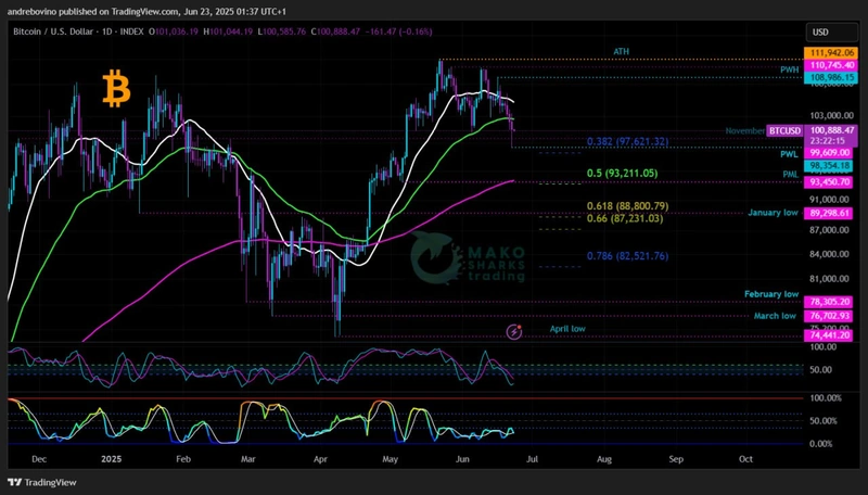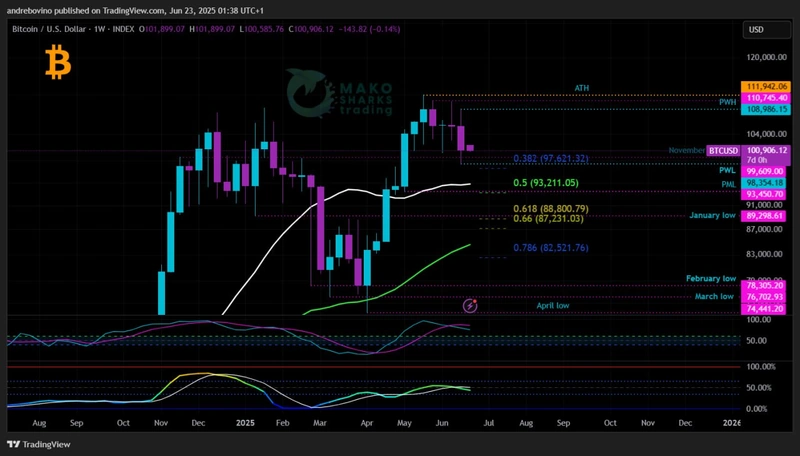 Bitcoin започва новата седмица на 100,7k, след като през уикенда леко спадна под зоната от 100k. Ще видим ли по-дълбоко отстъпление или зоната от 90k ще предостави необходимата подкрепа? Едно е сигурно, Bitcoin започна да търси ново дъно, единственият въпрос е къде ще бъде то. 📉 🕯 🟢