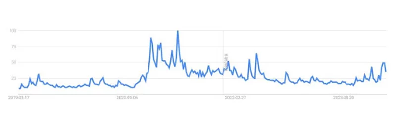 Разсъждавайки върху историческите данни, рекордът за интерес към търсенето преди това е поставен около три години по-рано, през септември 2021 г., когато достига впечатляващите 84.