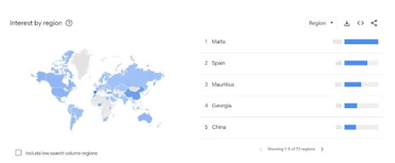 Освен това анализите на технологичния гигант показват интригуващо географско разпределение на интереса: Малта оглавява списъка на държавите с най-голям интерес към SOL, а Испания, Мавриций, Грузия и Китайската народна република също проявяват забележително любопитство към токена.