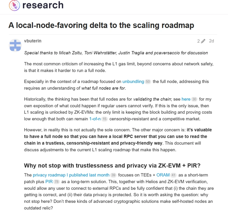 Използването на пълен възел на Ethereum е предизвикателство, защото изисква съхранение на постоянно нарастващо количество данни. С разрастването на Ethereum и обработката на все повече транзакции, поддържането на пълни възли става все по-трудно, което може да постави под риск децентрализацията на мрежата. В момента много потребители разчитат на RPC услуги на трети страни, за да имат достъп до данните на Ethereum, което поражда опасения относно доверието, цензурата и поверителността. Виталик се стреми да реши тези проблеми, като преосмисли начина, по който функционират възлите.