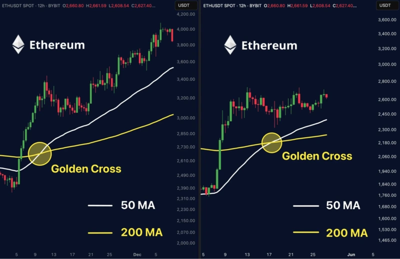 Известен трейдър е идентифицирал обещаваща конфигурация за Ethereum с появата на златен кръст на 12-часовата графика.